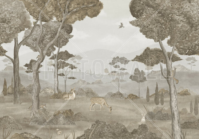 PHOTOWALL / Animals in Serene Forest - Grey (e95178)