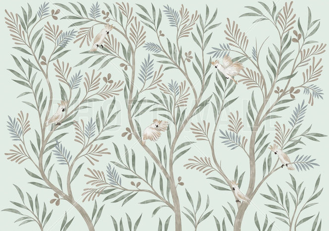 PHOTOWALL / Parrots in Trees - Light Green (e95197)