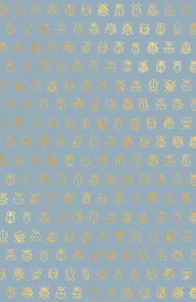 昆虫ーカブトムシ、テントウムシなどを金箔色でちりばめた