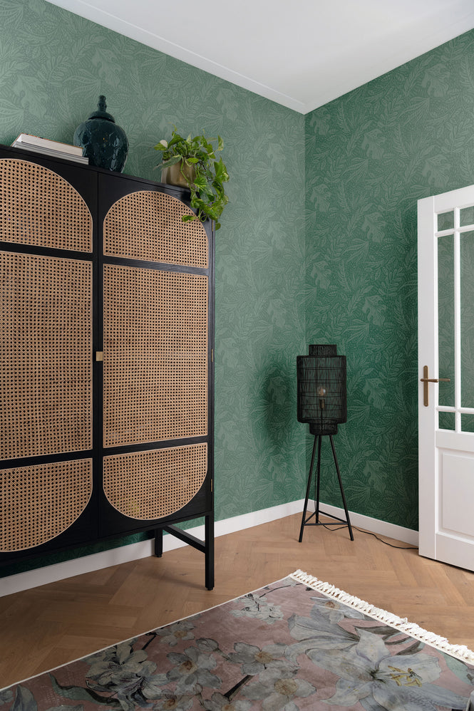 シダ、葉、とげなど、すべてが融合したブリティシュグリーンの壁紙です。