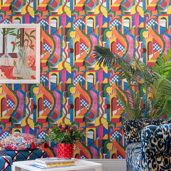 万華鏡のような様々な色と形が混ざり合って、カラフルで抽象的な世界を作り出します。明るい原色からソフトなパステルまで、このデザインのカラーは入念に選ばれました。こんなにたくさんの色と形を使うとまとまりがなくなりそうですが、全体のバランスが驚くほど取れています。毎日この虹のような壁紙を見るときっと元気がでるでしょう。