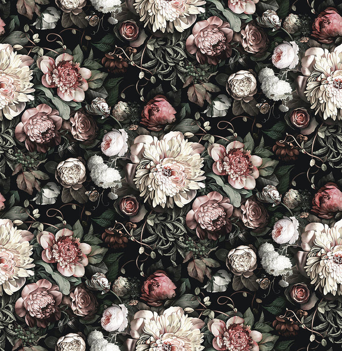 Zoom Ellie Cashman / Dark Floral Ⅱ Wallpaper / Black Saturated 【Fullセット(6パネル)】