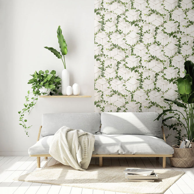 ハニカム柄とナチュラルにリネンロープに絡みつく蔦が