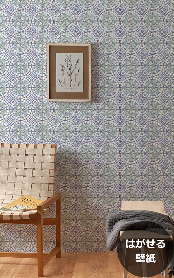 Zoom はがせる 壁紙 【Hattan Pattern】Louise Body / Old Blue HLBY-04(6枚セット)