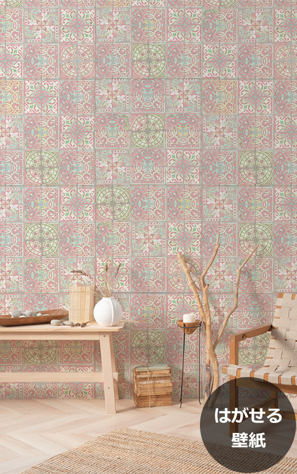 はがせる 壁紙 【Hattan Pattern】Louise Body / Patchwork Pink HLBY-08(6枚セット)