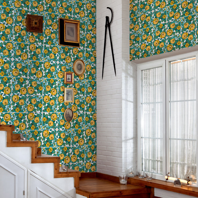 スペインのバルセロナにある、アントニ・ガウディが初期に手がけた重要な建築物の1つ、カサ・ビセンスに使用されているタイルのひとつが壁紙に。