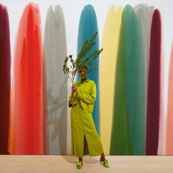 抽象表現主義の画家、Morris Louis(モーリス・ルイス)にインスピレーションを得た「Flood」は、色彩とフォルムの本質的な意味を探求したデザインです。手描きのラインが、時間帯や光の当たり方によって色が移ろう印象的な表情を生み出します。