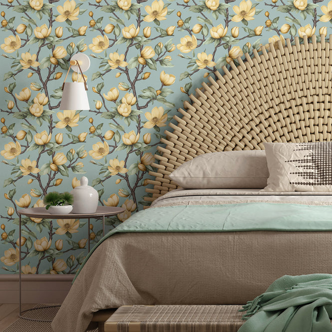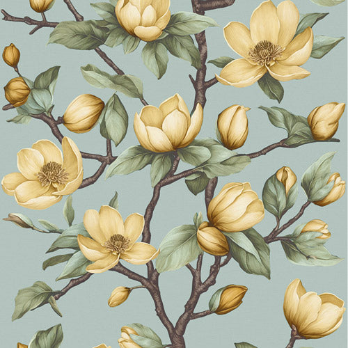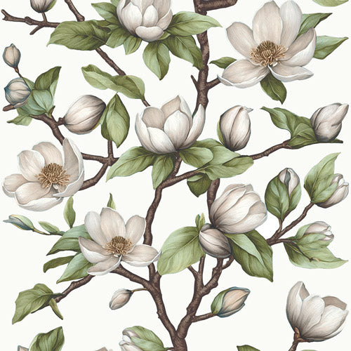 マグノリア-木蓮-の花が凛として咲いている瑞瑞しいデザイン。空に向かって咲く姿からその花言葉は「高潔な心」。リビングや寝室、玄関のウェルカムウォールに最適です。